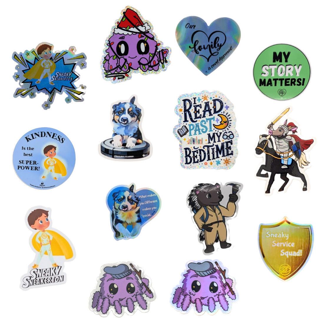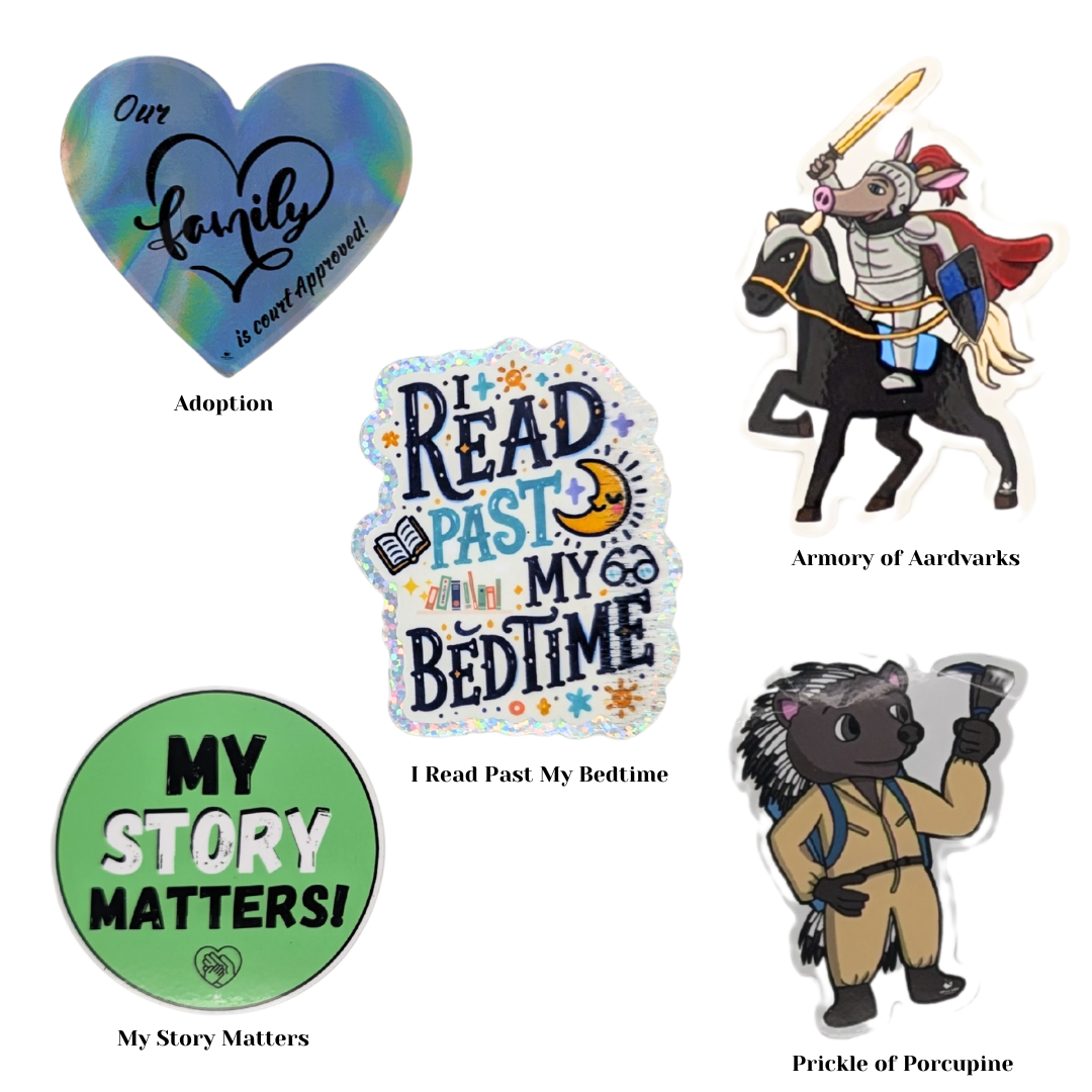 Take your literacy event to the next level with our branded high quality vinyl stickers. Perfect for stocking or easter egg stuffers, and suitable for water bottles, laptops, etc.